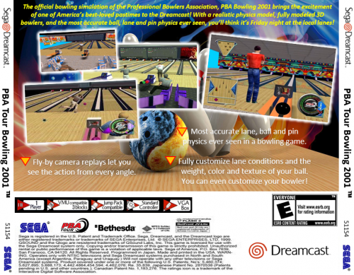 Custom box art for the unreleased NTSC version of Dreamcast's PBA Tour 2001 in the pre-2001 white label style.